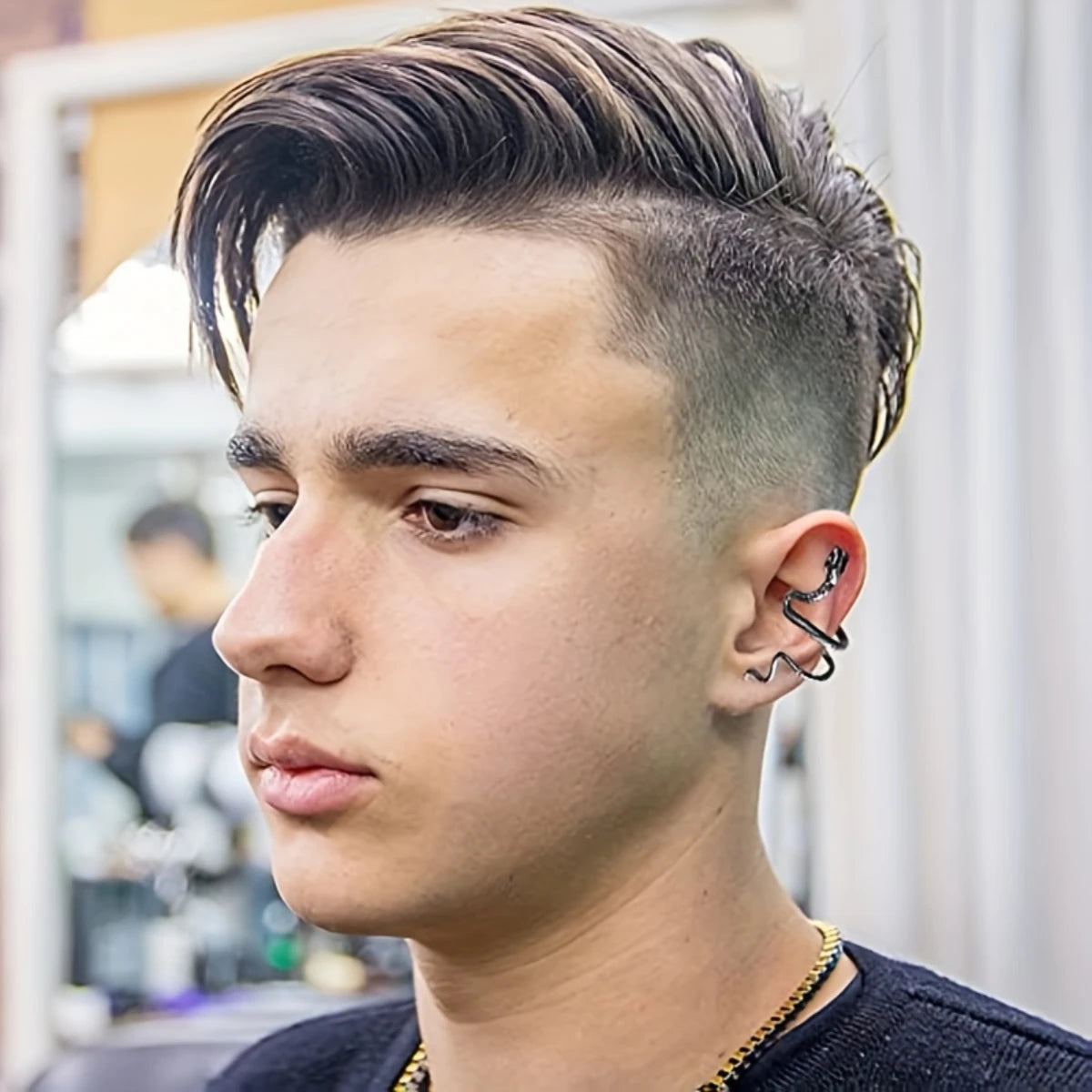 Hol dir den Look eines auffälligen Piercings, ganz ohne Schmerzen! Dieser Unisex Spiral Snake Ear Cuff ist die perfekte Lösung für einen dramatischen Punk -Look. Die detailreiche Schlangenfigur schmiegt sich dynamisch um den Ohrrand und erzeugt die Illusion eines vollflächigen Knorpel- oder Tragus-Piercings . Die Schlange symbolisiert Transformation und Kraft und macht diesen Ohrring nicht nur zu einem Schmuckstück, sondern zu einem starken Statement deiner Persönlichkeit .