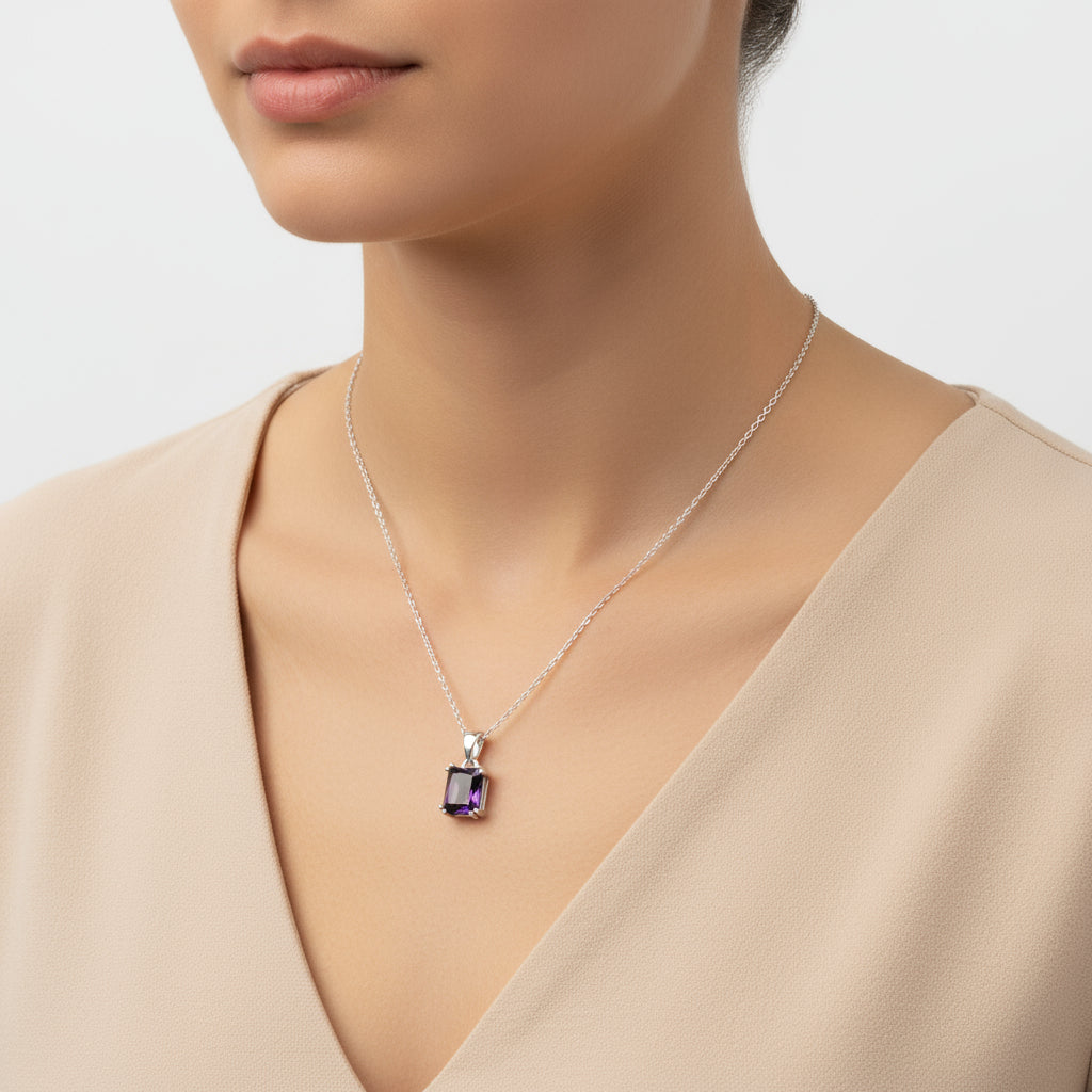 Sie werden es lieben, diese Halskette mit ihrem funkelnden Stein zu tragen, der an die Sterne erinnert. Perfekt für den Alltag, besondere Tage und Abende. Diese zeitlose Silberkette mit violettem Kristall und rundem Stein erwartet Sie und spricht alle Frauen an, die einen eleganten Look erzielen möchten. Das Modell der Halskette mit violettem rundem Stein ist aus 925er Sterlingsilber gefertigt. Das Silber ist rhodiniert. Rhodinierte Silberkettenmodelle behalten ihren Glanz lange und verzögern das Anlaufen. Der Stein darauf ist ein Zirkon. Die durchschnittliche Kettenlänge beträgt 45 cm. Alle unsere Produkte sind handgefertigt. Aufgrund von Silber und Edelsteinen kann das angegebene durchschnittliche Produktgewicht um ±10 % abweichen.