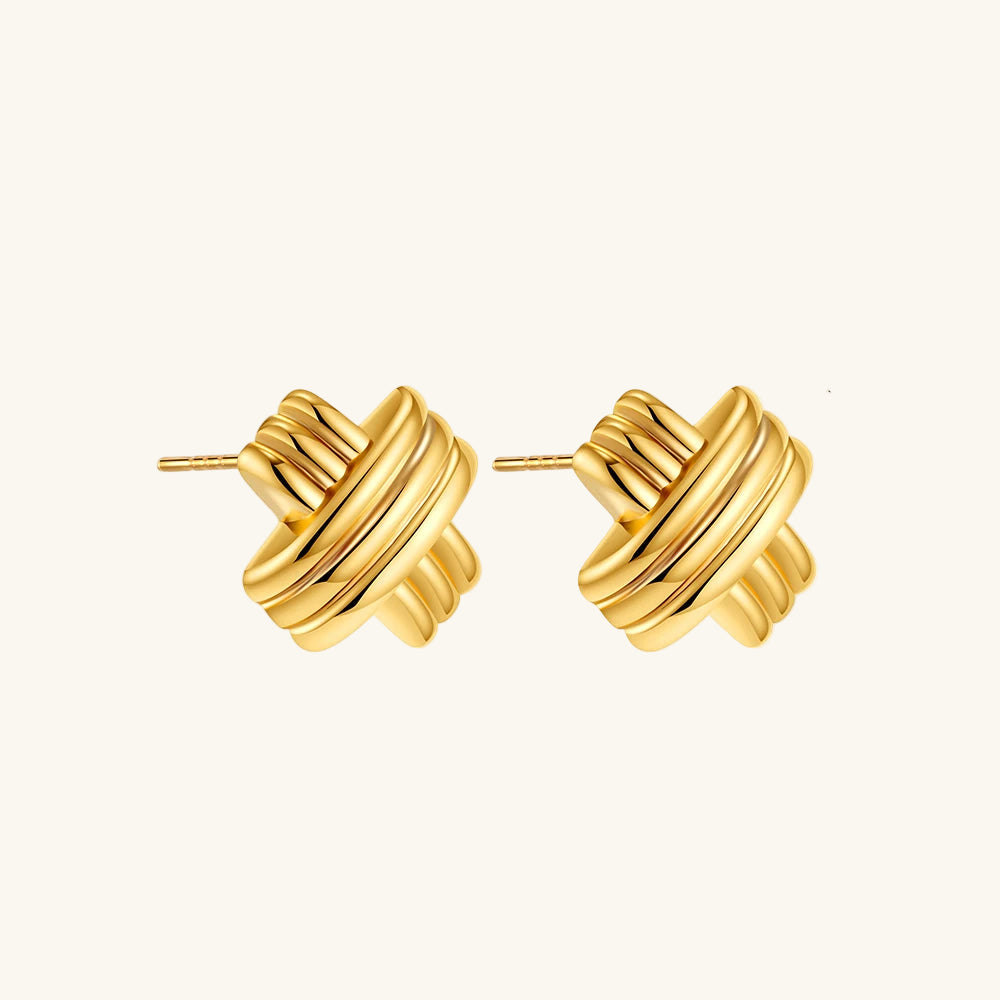 Erweitern Sie Ihre Sammlung mit diesen einzigartigen mehrlagigen Ohrsteckern mit gedrehtem Knoten . Dieses Design kombiniert meisterhaft geometrische Präzision mit einem Hauch von Retro- Eleganz und zeichnet sich durch mehrere Lagen aus, die aufwendig zu einem stilvollen, fesselnden Knoten verwoben sind. Trotz seiner kompakten Größe bietet dieses Schmuckstück die starke Wirkung eines modischen Statement-Schmuckstücks und verleiht Ihrem Look Struktur und Dimension.