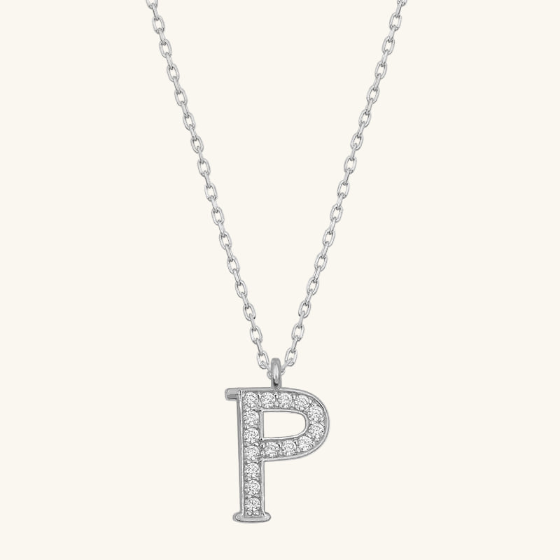 Rhodinierte Damen-Silberkette mit dem Buchstaben P