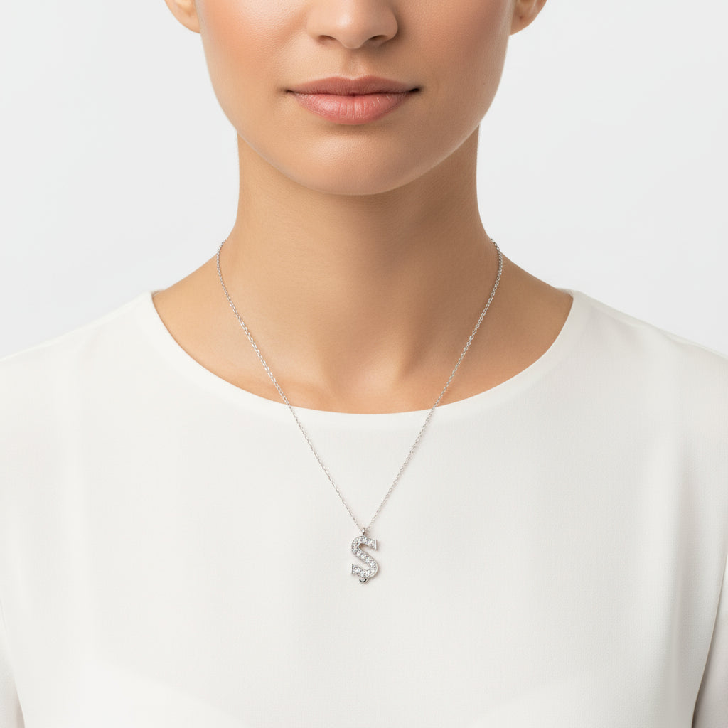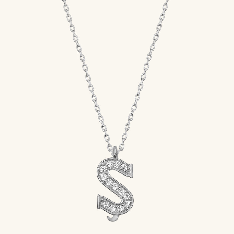 Rhodinierte Damen-Silberkette mit dem Buchstaben Ş