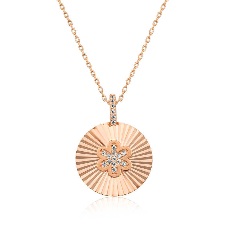 Rosévergoldete Damen-Silberkette mit gerüschter Blume