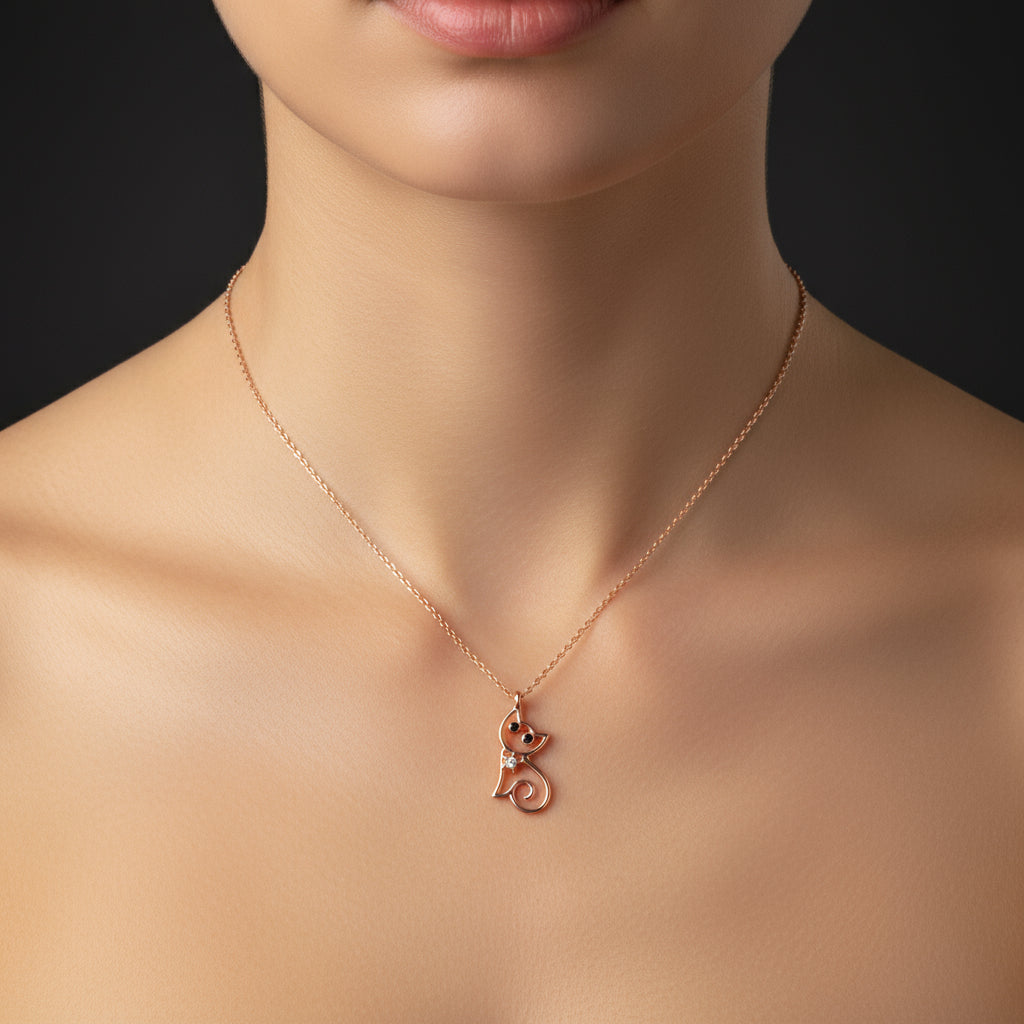 Rosévergoldete Katzen-Silberkette für Damen