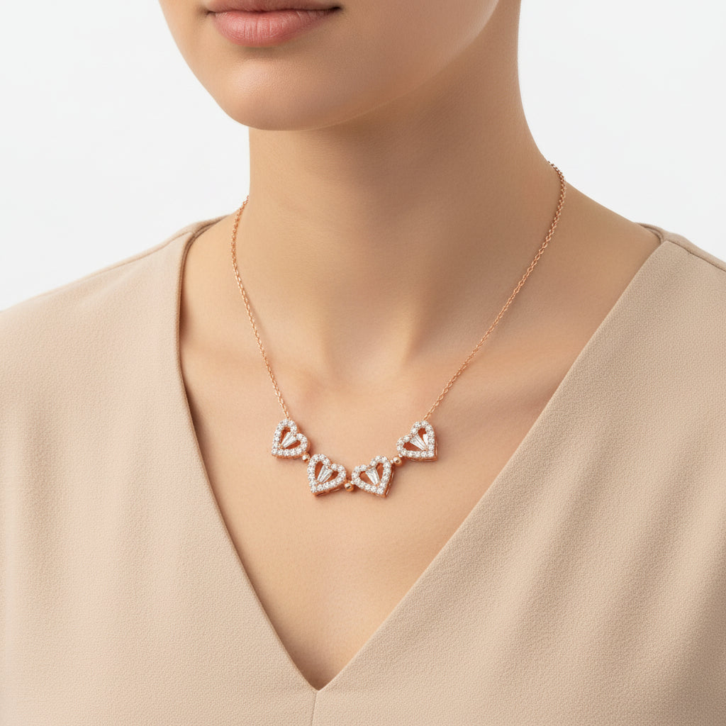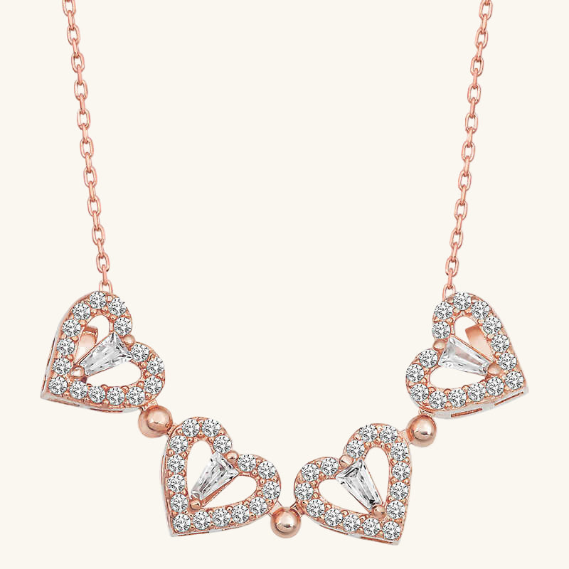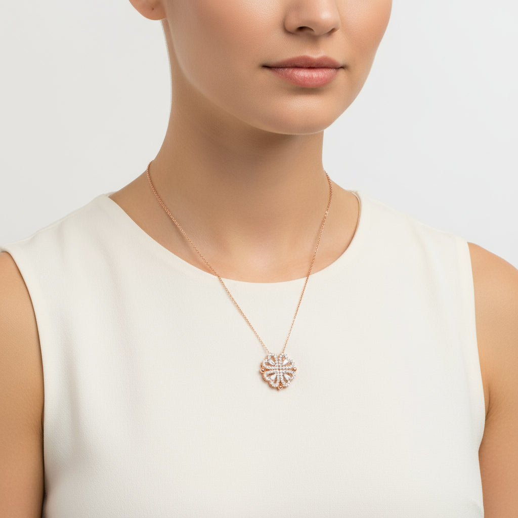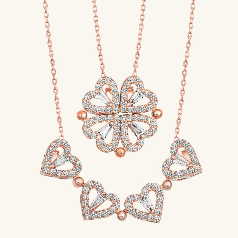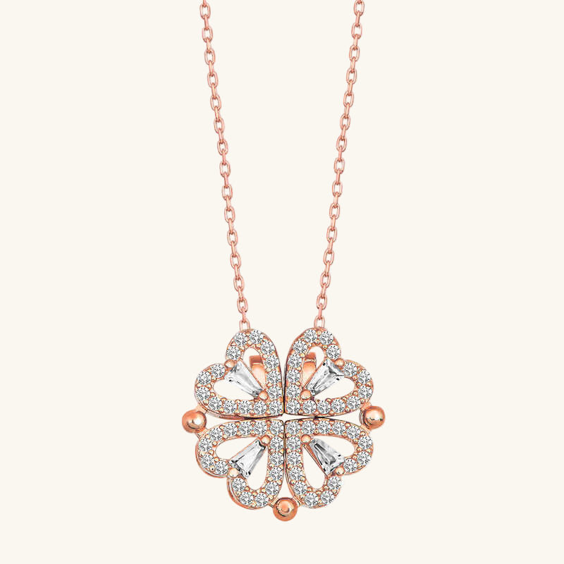 Rosévergoldete Herz-Kleeblatt-Halskette für Damen aus Silber