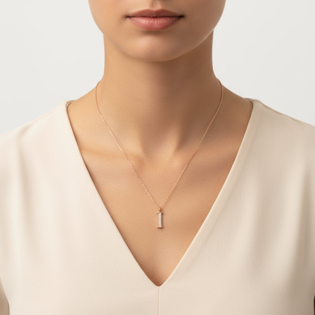 Rosévergoldete Damen-Silberkette mit dem Buchstaben „I“