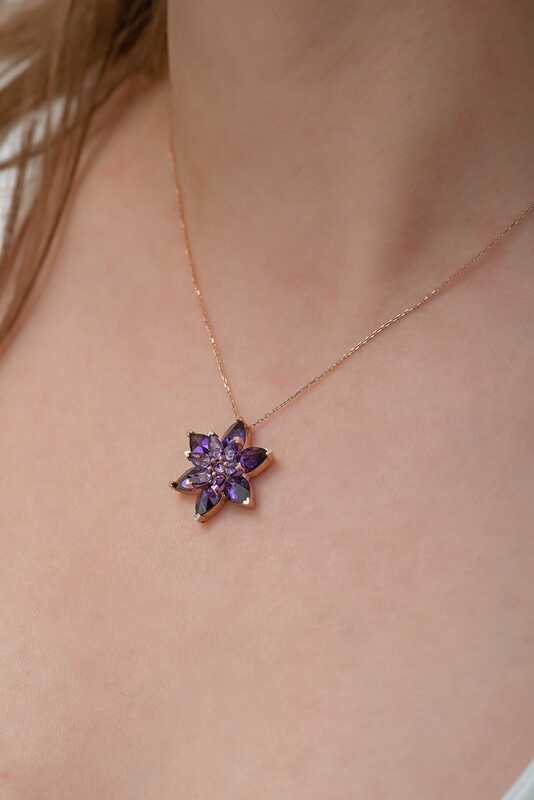 Die Lotusblume ist eine der schönsten Blumen und symbolisiert Spiritualität, Reinheit und Erleuchtung. Die Lotusblume blüht im schlammigen Wasser der Regenwälder und ist aufgrund ihrer Schönheit und Reinheit in Glaubensrichtungen wie dem Buddhismus und Hinduismus zu einem heiligen Symbol geworden. Auch viele alte Zivilisationen betrachteten die Lotusblume als heilig. Das Besondere an der Lotusblume ist ihre Fähigkeit, trotz ihres Wachstums in schlammigen, sumpfigen Gebieten sauber zu bleiben – sie kann sich sogar von jedem Staubkorn reinigen und die Welt in makelloser weißer Schönheit begrüßen. Sie können diese heilige silberne Halskette mit einer violetten Lotusblume Ihren Lieben schenken oder sich selbst eine Freude machen. Diese elegante Halskette ist die perfekte Wahl für Geburtstage, Valentinstag oder besondere Anlässe. Diese violette Lotusblumenkette aus 925er Sterlingsilber mit Rosébeschichtung ist wie all unser Silberschmuck handgefertigt. Aufgrund von Silber und Edelsteinen kann das angegebene Durchschnittsgewicht um ±10 % abweichen.