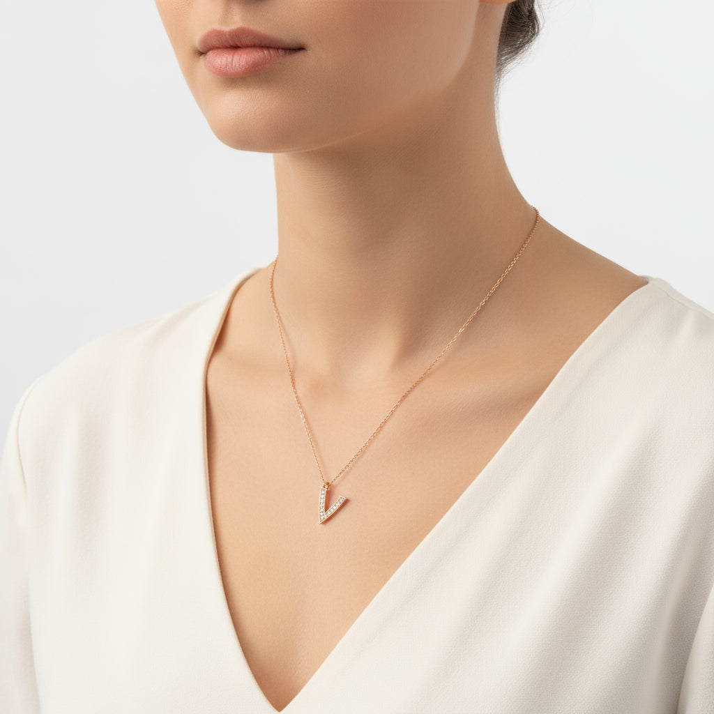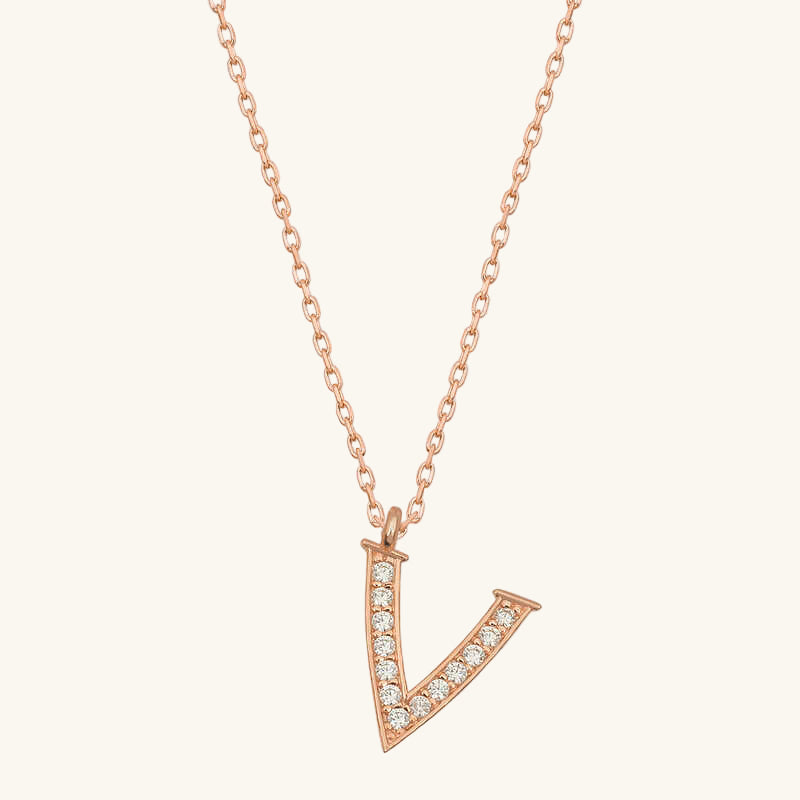 Rosévergoldete Damen-Silberkette mit V-Buchstaben