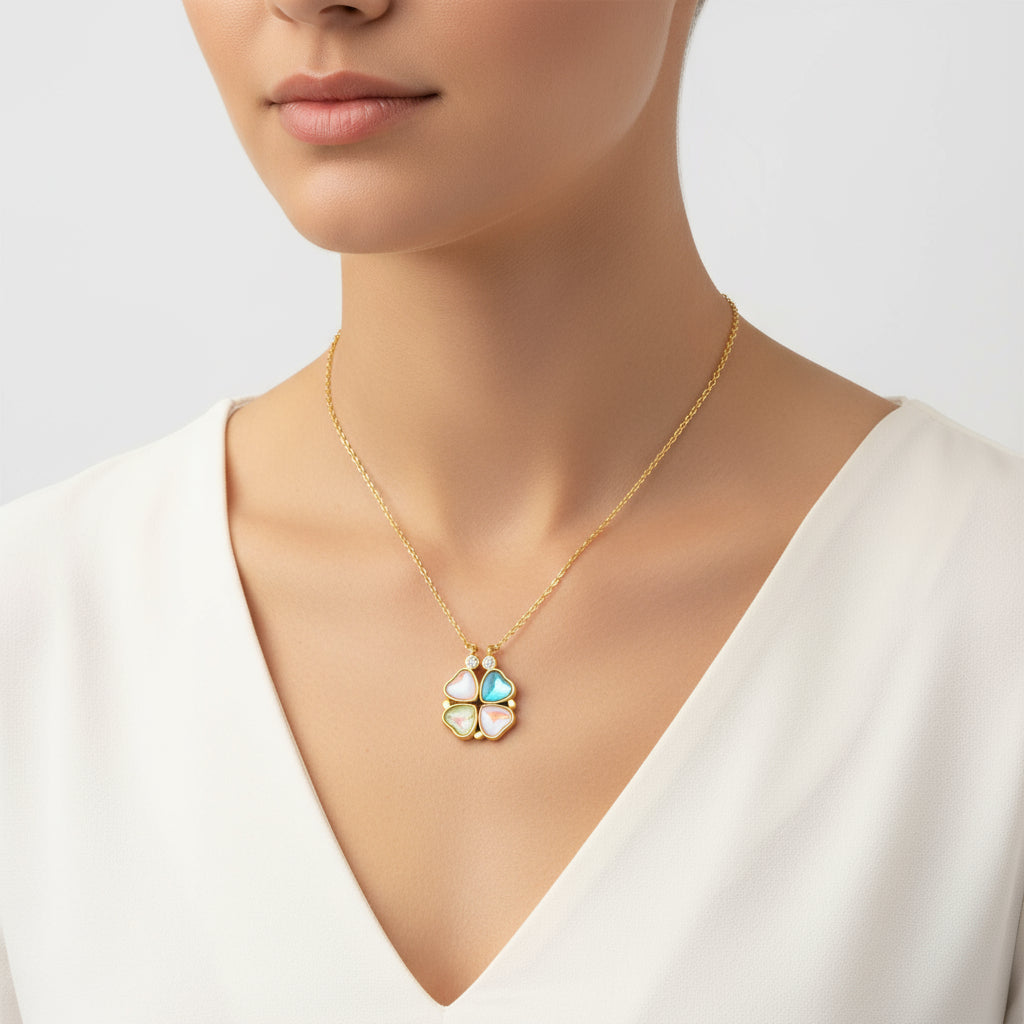 Silberfarbene, zu öffnende Kleeblatt-Halskette für Damen