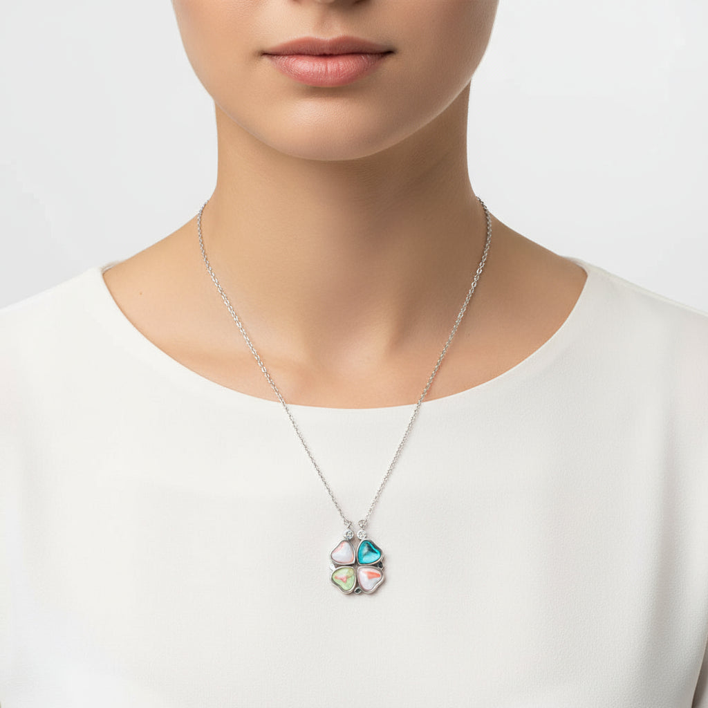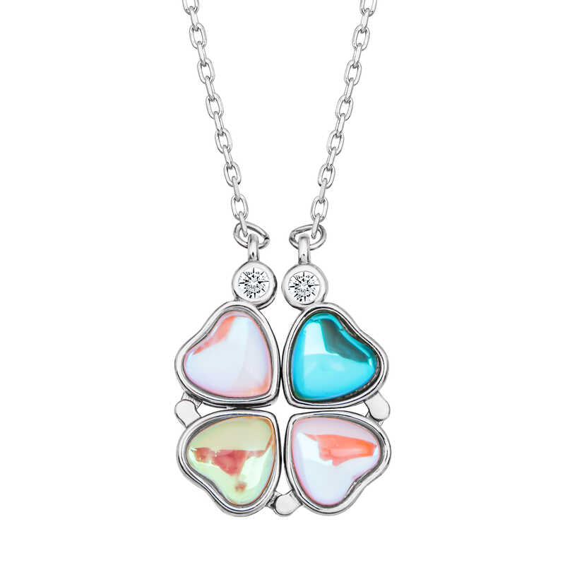 Silberfarbene, zu öffnende Kleeblatt-Halskette für Damen