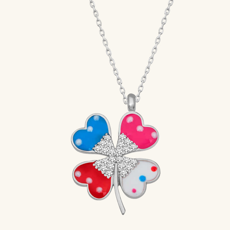 Das Kleeblatt bringt nicht nur Glück, sondern hat auch zahlreiche weitere positive Eigenschaften. Wer eine Kleeblattkette trägt, trägt ihr Glück und ihre heilenden Kräfte bei sich. Der farbenfrohe Kleestein gilt in allen Kulturen als Symbol für Glück. Das erste Blatt steht für Hoffnung, das zweite für Glauben, das dritte für Liebe und das vierte für Glück. Diese mit silberfarbenen Zirkoniasteinen besetzte Kleeblattkette für Damen ist ein wunderschönes Modell, das Sie gerne tragen und Ihren Liebsten schenken werden. Die silberfarbene Damenkette mit Steinen ist aus 925er Sterlingsilber gefertigt und rhodiniert. Silberne Damenketten mit Rhodinierung behalten lange ihren Glanz und laufen langsamer an. Die Silberkette hat eine durchschnittliche Länge von 45 cm. Wie alle unsere silbernen Damenkettenmodelle ist auch diese silberfarbene Kleeblattkette mit Steinen handgefertigt. Aufgrund des Silbers und der Edelsteine kann das Produktgewicht um ±10 % variieren.