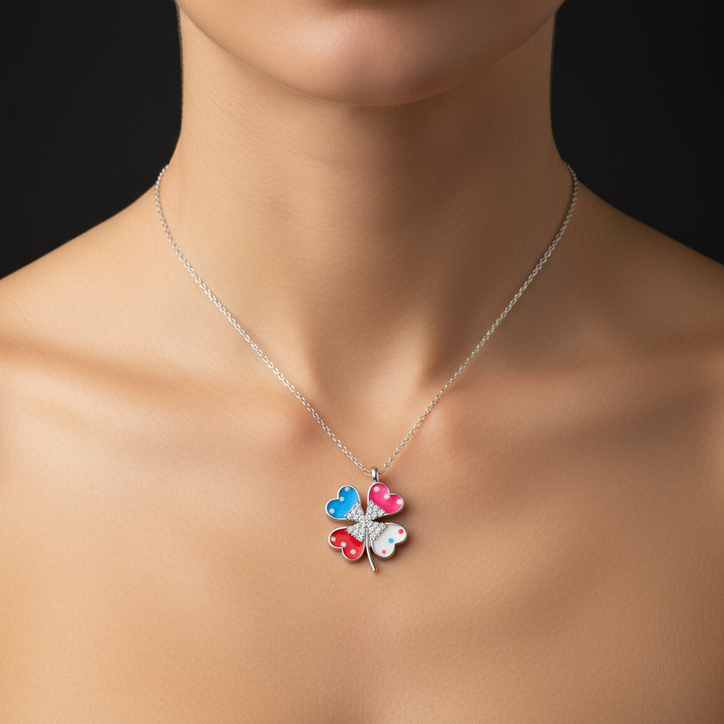 Silberfarbene Damenkette mit Kleeblatt