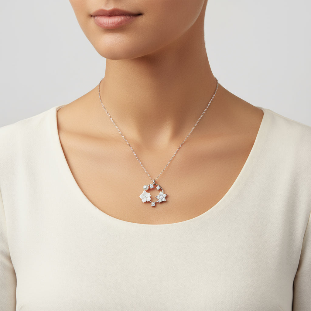 Die besonders eleganteste Art, Ihren Liebsten Ihre Gefühle auszudrücken, ist das Versenden stilvoller, farbenfroher und duftender Blumen. Die Blume, ein klassisches Geschenk für besondere Anlässe, erhält mit dieser Silberkette eine ganz neue Bedeutung. Diese silberne Blumenkette für Damen, gefertigt mit den hochwertigsten, hellsten und funkelndsten Steinen, erwartet alle, die ihre Liebe erneut ausdrücken und sagen möchten: „Du bist eine Blume.“ Diese silberne Magnolienblüten-Stern-Halskette für Damen mit besonderem Design ist aus 925er Sterlingsilber gefertigt und rhodiniert. Silberne Damenketten mit Rhodinierung behalten ihren Glanz lange und laufen nicht so schnell an. Der weiße Stein der Kette ist ein Zirkon. Die Silberkette hat eine durchschnittliche Länge von 45 cm. Wie alle silbernen Damenketten ist auch die silberne Magnolienblüten-Halskette für Damen handgefertigt. Aufgrund von Silber und Edelsteinen kann das angegebene Produktgewicht um ±10 % abweichen.