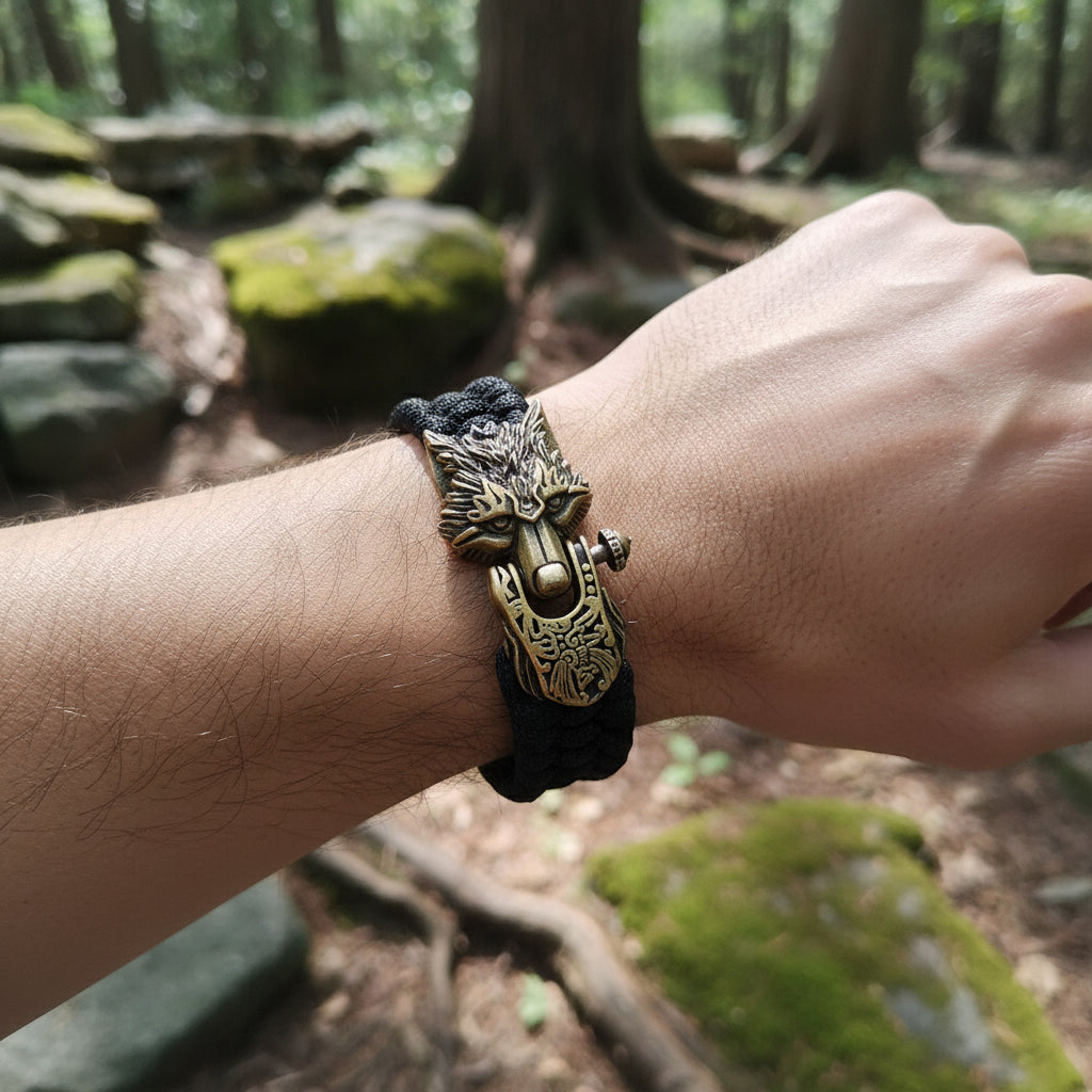 Dies ist kein Seil für einen Wanderer; dies ist die Kette eines Königs. Schlüpfen Sie mit diesem beeindruckenden Wolfskopfarmband aus Metall in die Rolle eines Wikingerhäuptlings. Es ist ein kraftvolles Symbol für Führung, Ehre und die schützende Kraft des Wolfsclans. Mehr als nur ein Accessoire, ist dies ein tragbares Rüstungsteil, eine greifbare Verbindung zum stolzen Erbe und dem unbeugsamen Geist der alten nordischen Krieger.