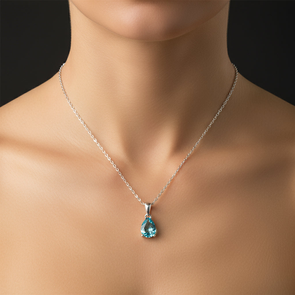 Türkisfarbene Tropfenstein-Damen-Silberkette