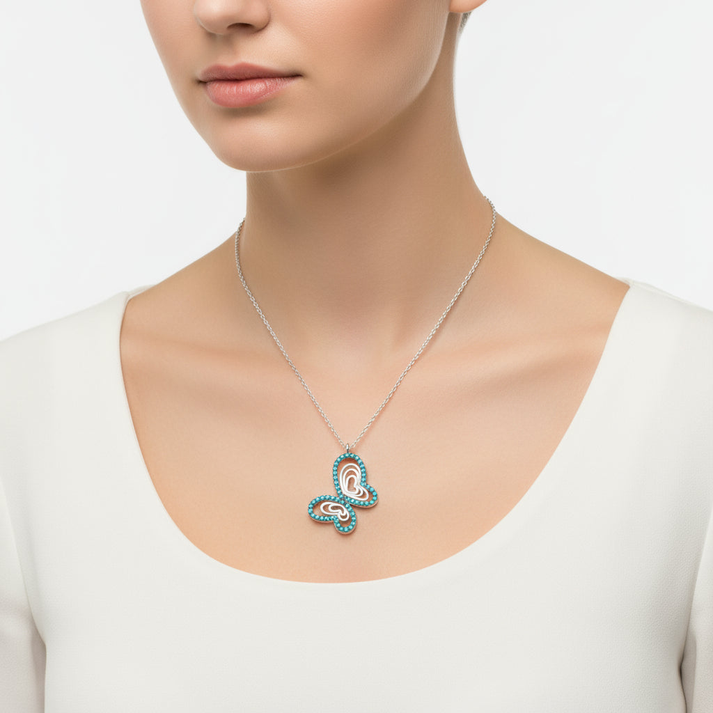 Türkisfarbener Schmetterlings-Damen-Silberanhänger