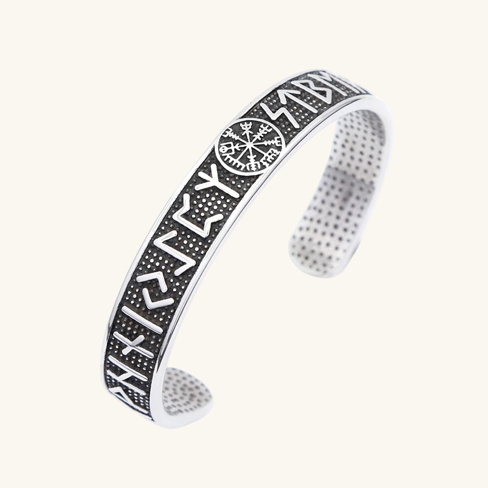 Tragen Sie die legendäre Magie der Nordmänner mit diesem markanten Wikinger-Kompass-Armband . Das Herzstück zeigt den Vegvísir (Wikinger-Kompass), ein altes isländisches Symbol, das dem Träger helfen soll, sich bei rauem Wetter zurechtzufinden. Mit eingravierten Runen dient dieses Armband als mächtiges Amulett für Schutz und Orientierung. Das robuste Vintage-Design verkörpert perfekt die Punk-, Biker- und nordische Ästhetik.