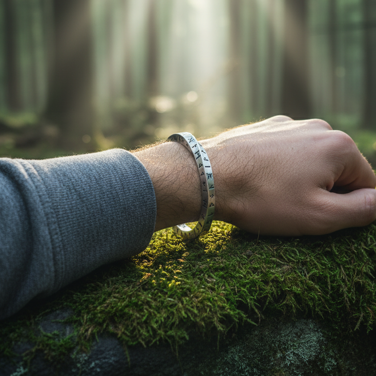 Umarmen Sie den wilden Geist des Nordens mit diesem eindrucksvollen Wikinger-Armreif . Dieses Stück fängt die nordische Vintage- Ästhetik wunderschön ein und besticht durch sein robustes, gedrehtes Kabeldesign, das sich kraftvoll um das Handgelenk legt. Der Armreif ist oft mit authentischen Wikinger-Runen (Buchstaben) graviert, die ihm uralte Bedeutungen von Stärke, Schutz oder Mut verleihen und ihn zu einem kraftvollen Amulett machen.