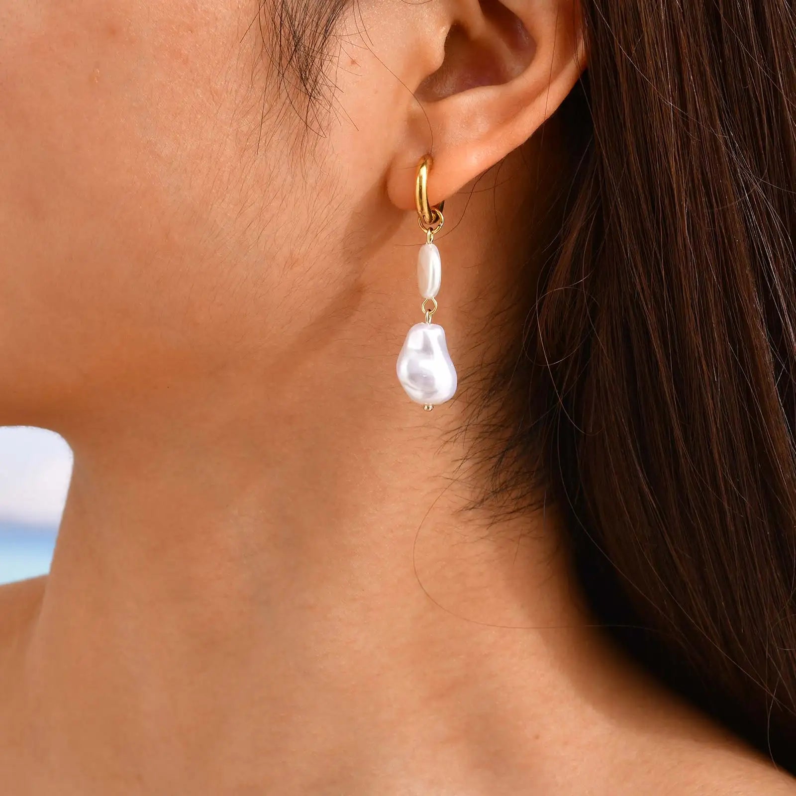 Zeitlose Eleganz: Die barocken unregelmäßigen Perlen-Tropfenohrringe.