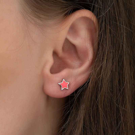 Boucles d'oreilles en argent étoile rose phosphorescente