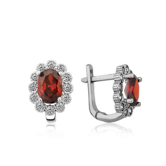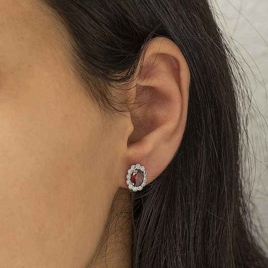 Boucles d'oreilles en argent pour femme motif fleur rouge J