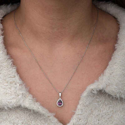 Collier en argent pour femme avec pierre de zircone blanche en forme de goutte