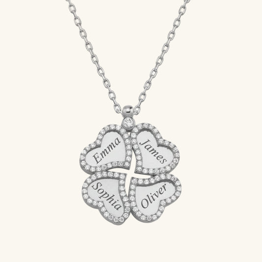 Collier en argent pour femme avec trèfle en forme de cœur gravé