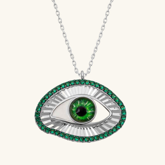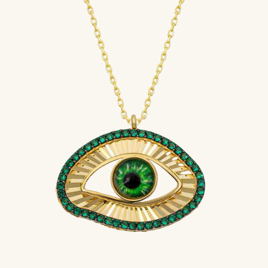 Collier en argent plaqué or avec protection des yeux en émeraude pour femme