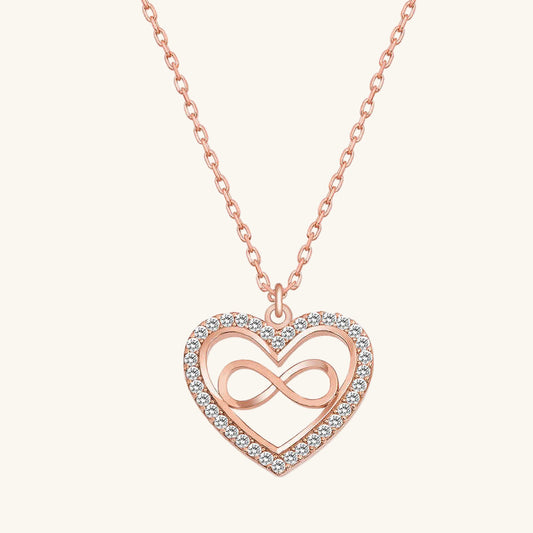 Collier en argent plaqué or rose avec cœur et infini pour femme