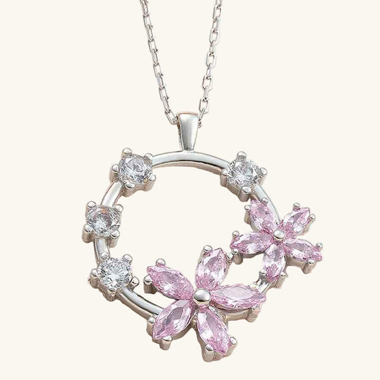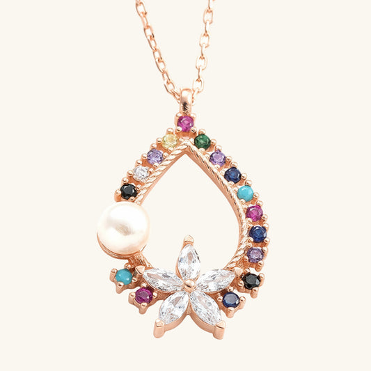 Collier en argent plaqué or rose avec pierres colorées et motif floral pour femme