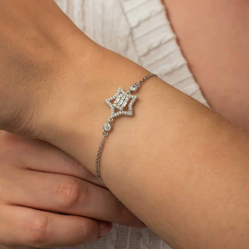 Bracelet en argent pour femme avec pierre baguette et étoile