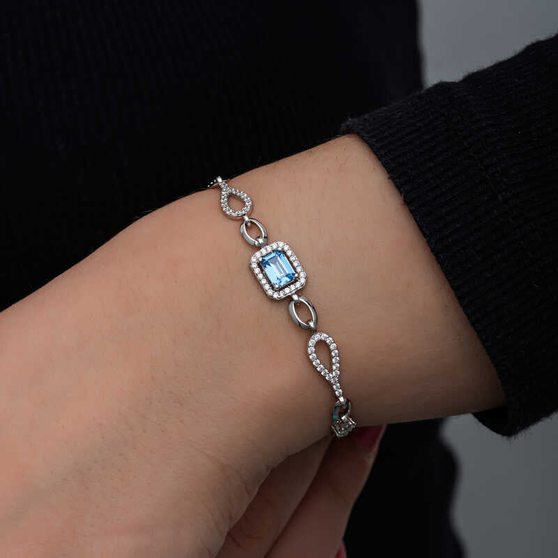Bracelet Baguette Turquoise en Argent pour Femme