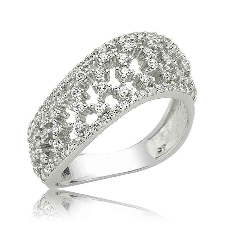 Cette bague pour femme en argent sterling 925, ornée d'un motif de tapis, est rhodiée pour préserver son éclat et retarder le ternissement. Les pierres de la bague sont des zircones. Tous nos modèles de bagues en argent sont fabriqués à la main. En raison de la présence d'argent et de pierres précieuses, le poids du produit peut varier de ± 10 %.