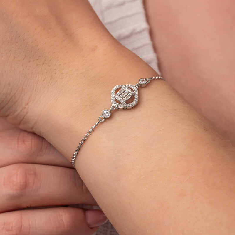 Élégant, ce bracelet baguette trèfle en argent se porte avec élégance au quotidien comme pour les grandes occasions. Complétez vos looks avec des pièces innovantes qui plairont aux femmes de tous âges. Choisissez parmi des modèles adaptés à différents styles, pour des tenues sportives, classiques ou originales. Ce bracelet élégant est un excellent cadeau pour un anniversaire, la Saint-Valentin ou toute autre occasion spéciale. Fabriqué en argent sterling 925, il est rhodié pour préserver son éclat et retarder le ternissement. Comme tous les bracelets en argent pour femme, ce modèle baguette trèfle est fabriqué à la main. En raison de la présence d'argent et de pierres précieuses, le poids moyen indiqué peut varier de ± 10 %.