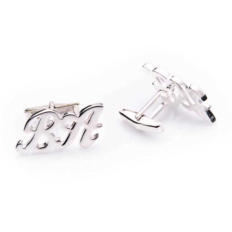 Boutons de manchette en argent avec lettres personnalisées