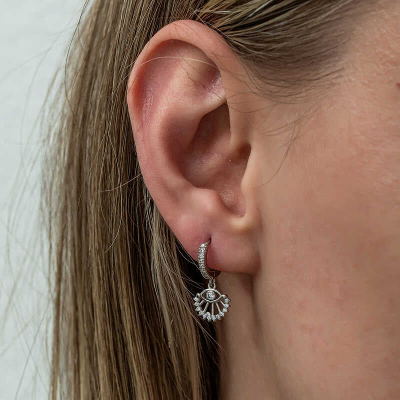 Parmi les cadeaux à offrir pour les occasions spéciales, la fleur prend tout son sens avec les boucles d'oreilles en argent. Ces boucles d'oreilles pour femme en argent, ornées de pierres de la plus haute qualité, les plus brillantes et les plus étincelantes, sont idéales pour celles qui souhaitent exprimer à nouveau leur amour. Ce modèle, symbole de clarté et de pureté d'esprit, est fabriqué en argent sterling 925. Il est rhodié. Les boucles d'oreilles en argent rhodié conservent leur éclat longtemps et retardent le ternissement. Comme toutes les boucles d'oreilles en argent pour femme, ce modèle de boucle d'oreille œil en argent est également fabriqué à la main. Les pierres qui le composent sont des zircons. En raison de la présence d'argent et de pierres précieuses, le poids moyen indiqué peut varier de ± 10 %.