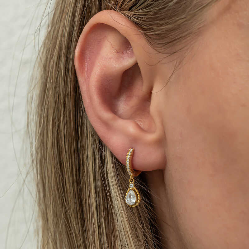 La fleur, cadeau classique pour les grandes occasions, prend tout son sens grâce à ces boucles d'oreilles en argent. Ces boucles d'oreilles pour femme, confectionnées avec des pierres de la plus haute qualité, éclatantes et brillantes, sont idéales pour celles qui souhaitent exprimer leur amour une fois de plus. Ce modèle, symbole de clarté et de pureté d'esprit, est en argent sterling 925. L'argent est plaqué or. Les boucles d'oreilles en argent plaqué or conservent leur éclat longtemps et ne ternissent pas. Comme toutes les boucles d'oreilles en argent pour femme, ces boucles d'oreilles pendantes sont fabriquées à la main. Elles sont serties de zircons. En raison de la présence d'argent et de pierres précieuses, le poids moyen indiqué peut varier de ± 10 %.