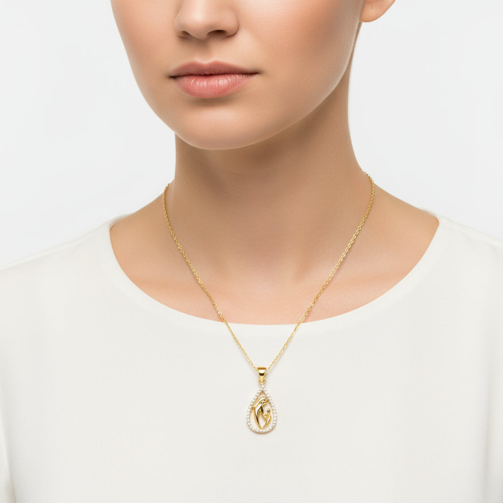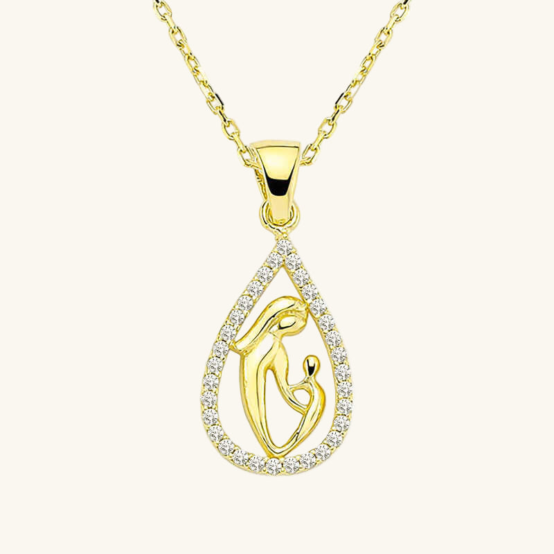 Collier mère-enfant en argent plaqué or avec pendentif goutte