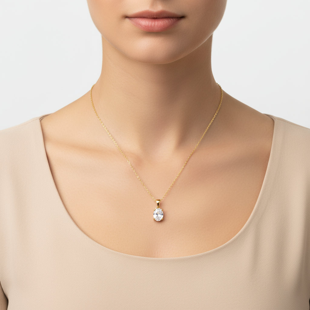 Collier en argent plaqué or avec pierre de zircon ovale pour femme