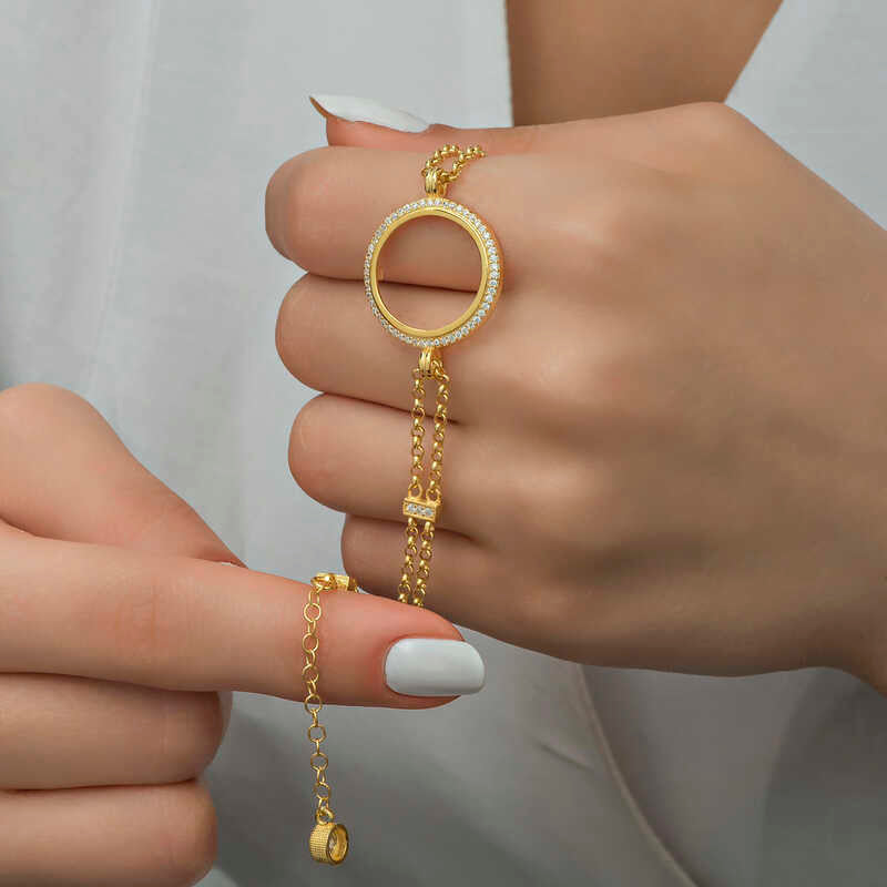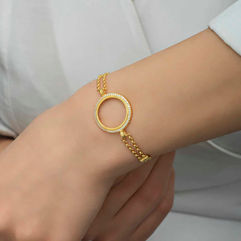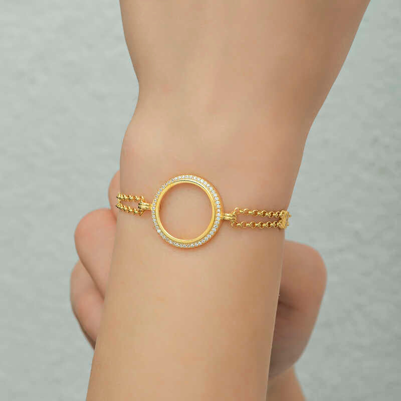Laissez votre amour s'exprimer sur la peau de la femme que vous aimez avec ce bracelet femme en argent sterling 925, élégant grâce à son motif rond. Embellissez le poignet de votre bien-aimée avec ce modèle, idéal pour les jeunes amoureuses et celles qui gardent leur jeunesse d'esprit lors des occasions spéciales. Ce bracelet, que vous et vos proches aurez plaisir à porter, sera l'un des plus beaux cadeaux pour votre bien-aimée. Ce bracelet femme est fabriqué en argent sterling 925. Il est plaqué or. Les bracelets femme en argent plaqué or conservent leur éclat longtemps et ne ternissent pas. Les pierres blanches du bracelet sont des zircons. Comme tous les bracelets femme, ce bracelet femme en argent est fabriqué à la main. En raison de la présence d'argent et de pierres précieuses, le poids moyen indiqué peut varier de ± 10 %.