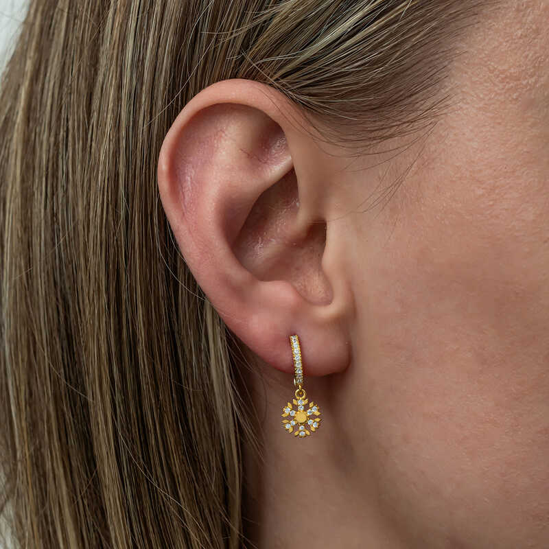 L'éclat et la clarté des femmes sont comparés à ceux d'un flocon de neige et sont conçus spécialement. Une autre caractéristique des flocons de neige est leur singularité : chacun, comme les femmes, est unique et possède une valeur particulière. Leur noblesse a toujours su attirer l'attention. De plus, ils symbolisent le bonheur, tout comme les flocons de neige. Cette élégante boucle d'oreille est fabriquée en argent sterling 925. L'argent est plaqué or. Les boucles d'oreilles en argent plaqué or conservent leur éclat longtemps et ne ternissent pas. Les pierres sont en zircon. Comme toutes les boucles d'oreilles en argent, cette boucle d'oreille pendante flocon de neige pour femme est fabriquée à la main. En raison de la présence d'argent et de pierres précieuses, le poids moyen indiqué peut varier de ± 10 %.