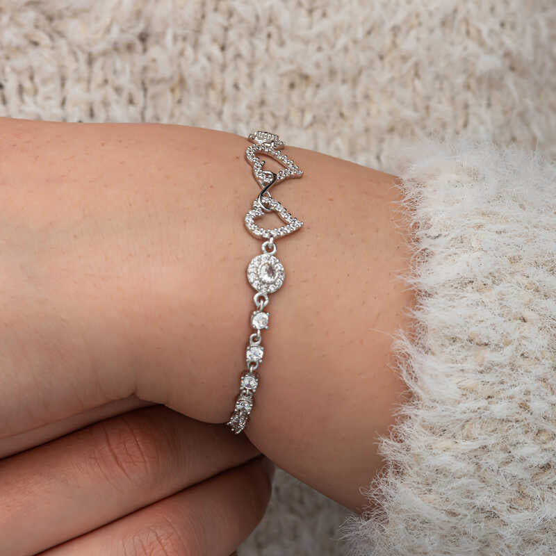 Bracelet en argent pour femme Infinity Two Hearts