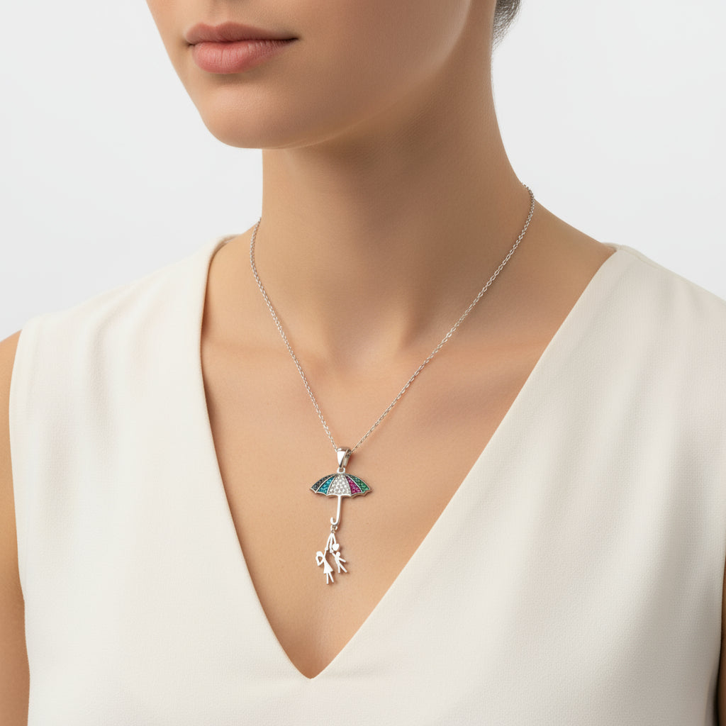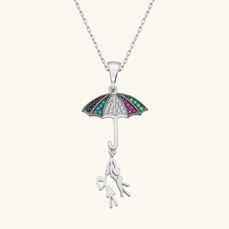 Inspiré des amoureux sous un parapluie sous la pluie, ce collier en argent au design unique est un cadeau plein de sens que vous adorerez porter ou offrir à vos proches pour des occasions spéciales comme le Nouvel An, la Saint-Valentin ou un anniversaire. Le pendentif est en argent sterling 925 rhodié. Les colliers pour femme en argent rhodié conservent leur éclat longtemps et retardent le ternissement. Les pierres du pendentif sont des zircons. La chaîne en argent mesure en moyenne 45 cm. Comme tous les colliers pour femme en argent, ce collier papillon est fabriqué à la main. En raison de la présence d'argent et de pierres précieuses, le poids indiqué peut varier de ± 10 %.