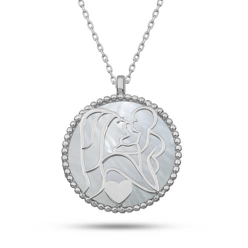 Un modèle unique représentant l'amour entre un enfant et sa mère. Ce collier exprime des sentiments d'amour, de dévouement et d'affection. Ce collier mère-enfant est l'un des cadeaux les plus idéaux pour témoigner votre dévouement à votre mère. Ce modèle unique pour votre mère, le collier mère-enfant en perles, est fabriqué en argent sterling 925. L'argent est rhodié. Les modèles de colliers mère-enfant en argent rhodié conservent leur éclat longtemps et retardent le ternissement. La longueur moyenne de la chaîne en argent est de 45 cm. Ce collier mère-enfant en argent est fabriqué à la main. En raison de la présence d'argent et de pierres précieuses, le poids moyen indiqué peut varier de ± 10 %.