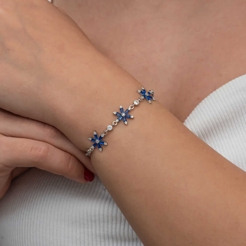 Bracelet en argent pour femme avec fleur de lotus bleu marine