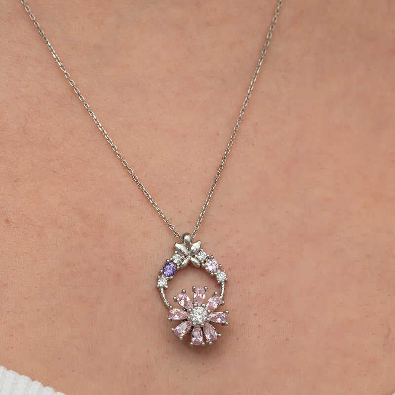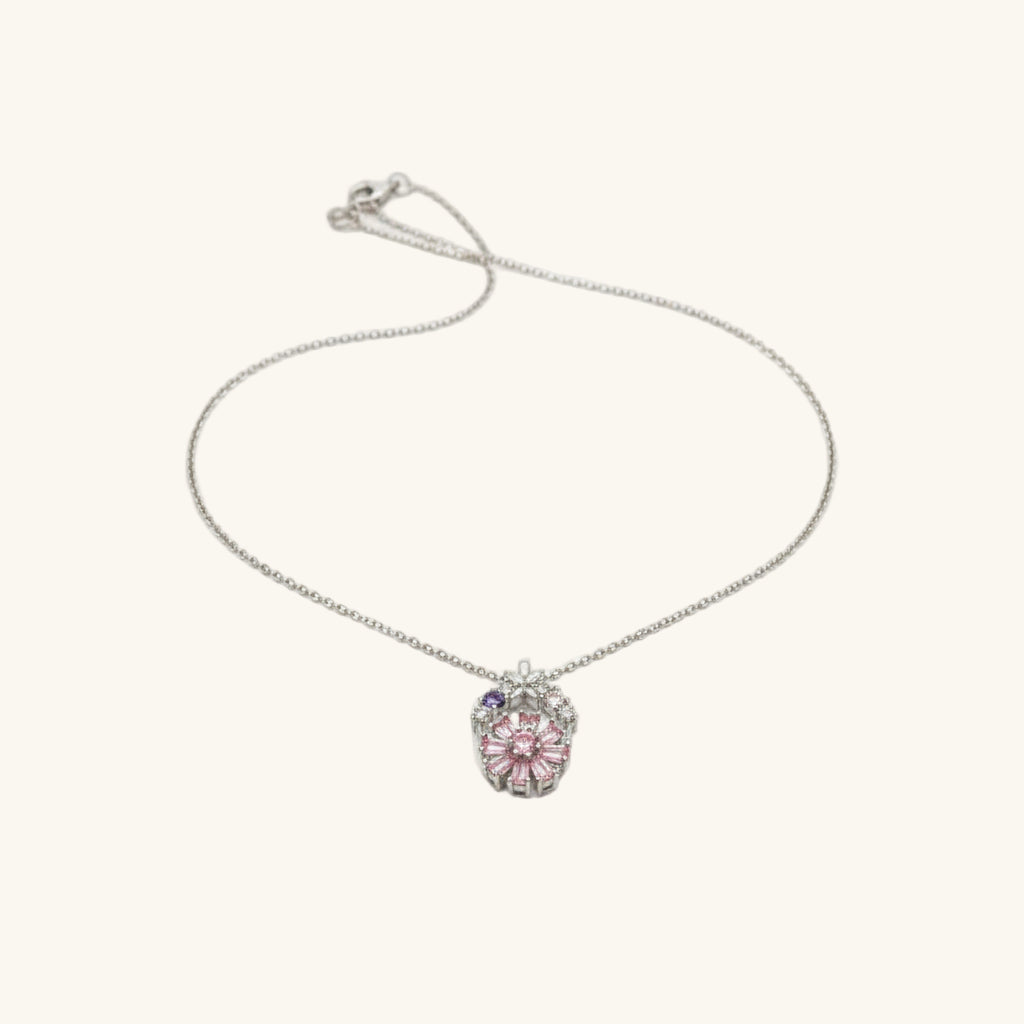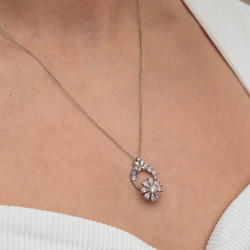 Collier en argent pour femme avec fleur rotative rose