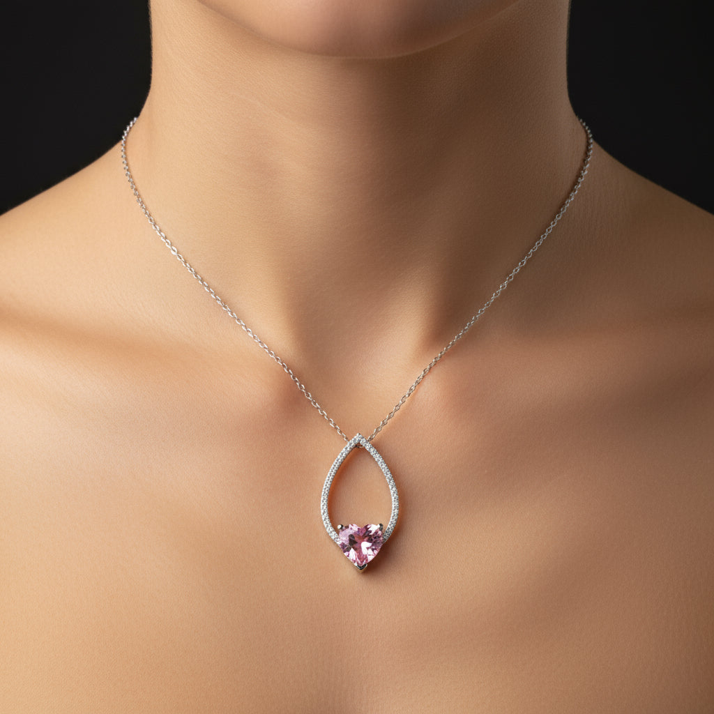Pendentif en argent pour femme en forme de cœur en pierre rose