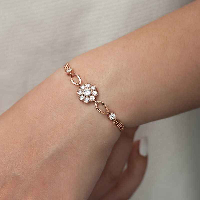 Un choix idéal pour les femmes qui apprécient les looks élégants et raffinés. Orné de gouttes et de zircons, ce bracelet ravira celles qui recherchent glamour et sophistication, convenant à tous les goûts et toutes les envies. Ce bracelet pour femme à motif floral est réalisé en argent sterling 925 plaqué rose, garantissant un éclat durable. Comme tous les bracelets pour femme en argent, ce modèle floral est fabriqué à la main. En raison de la présence d'argent et de pierres précieuses, le poids moyen indiqué peut varier de ± 10 %.
