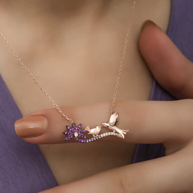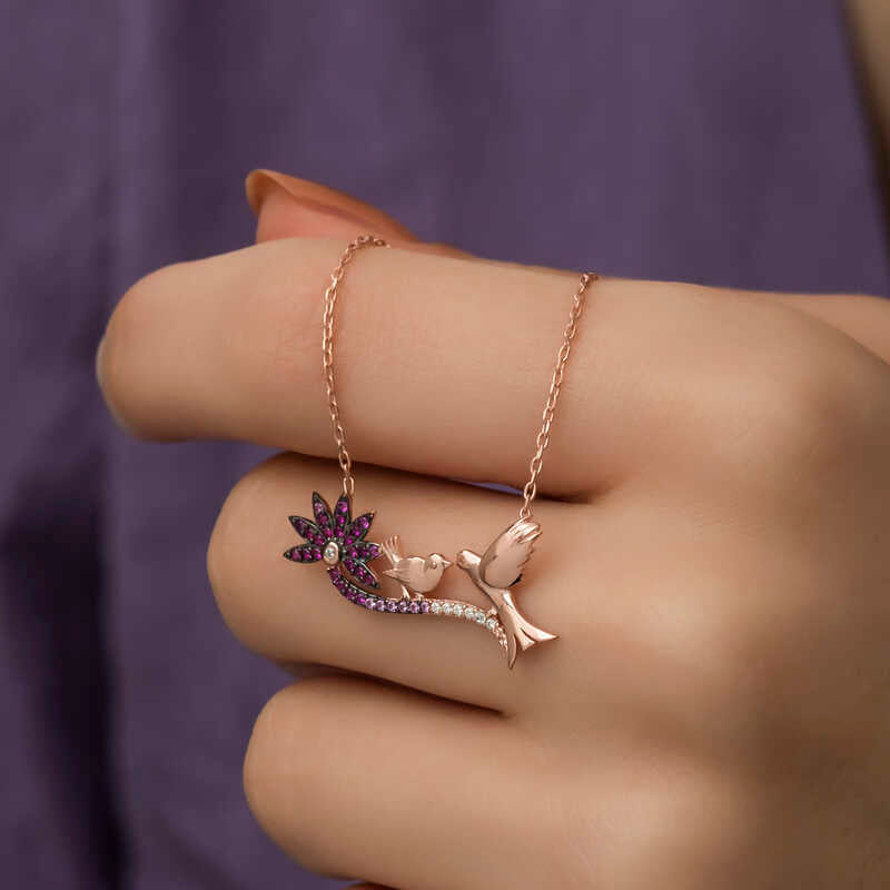 Ce modèle unique symbolise l'amour entre une mère et son enfant. C'est l'un des cadeaux les plus précieux pour exprimer votre attachement à votre mère. Confectionné en argent sterling 925, ce collier mère et bébé oiseau est orné d'un placage rose qui rehausse son éclat et retarde le ternissement. Les pierres du collier sont des zircones. La chaîne en argent mesure 45 cm de long. Fabriqué à la main avec soin, le poids de ce collier mère et bébé oiseau peut varier de ± 10 % en raison de l'argent et des pierres précieuses.