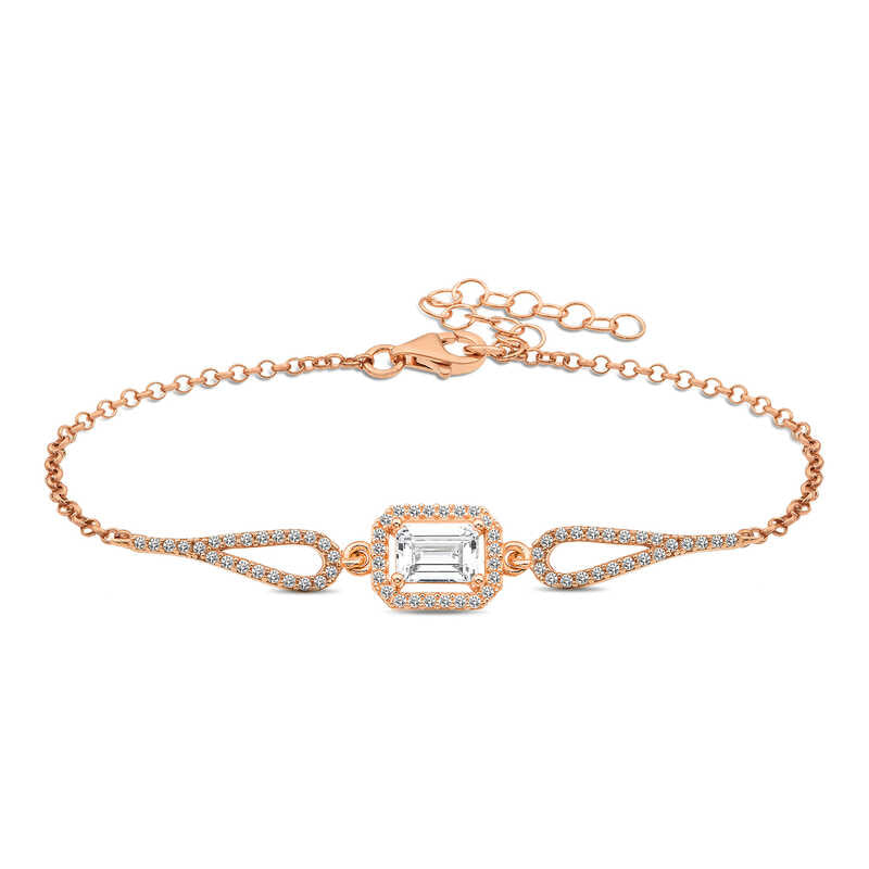Élégant, ce bracelet baguette en argent se porte avec élégance au quotidien comme pour les grandes occasions. Complétez vos looks avec des pièces innovantes qui plairont aux femmes de tous âges. Choisissez parmi des modèles qui s'adaptent à tous les styles, pour des tenues sportives, classiques ou originales. Ce bracelet élégant est un excellent cadeau pour un anniversaire, la Saint-Valentin ou toute autre occasion spéciale. Fabriqué en argent sterling 925, il est plaqué rose pour un éclat durable et un retard de ternissement. Comme tous les bracelets en argent pour femme, ce modèle baguette rectangulaire plaqué rose est fabriqué à la main. En raison de la présence d'argent et de pierres précieuses, le poids moyen indiqué peut varier de ± 10 %.