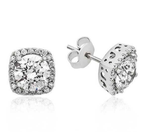 Boucles d'oreilles en argent avec diamants sertis carrés